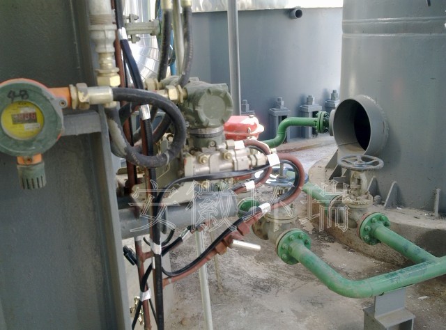 壓力變送器液位計常應(yīng)氣候溫度過低,造成堵塞現(xiàn)象,需要電伴熱防凍,渝豐化工要求其冬季維持溫度為5--10℃,并且要求電伴熱帶具有防爆防腐功能。安徽環(huán)瑞提供ZRDHR-PF46滿足客戶對使用場合及維持溫度要求,其最高表面溫度為70℃,耐溫可達200℃。可保證維持溫度的情況下,不會出現(xiàn)溫度過高的情況,更加經(jīng)濟安全,而針對現(xiàn)場細(xì)長狹窄的地方自限溫電熱帶可實現(xiàn)交叉纏繞,解決局部伴熱的問題。以下為現(xiàn)場施工安裝圖: