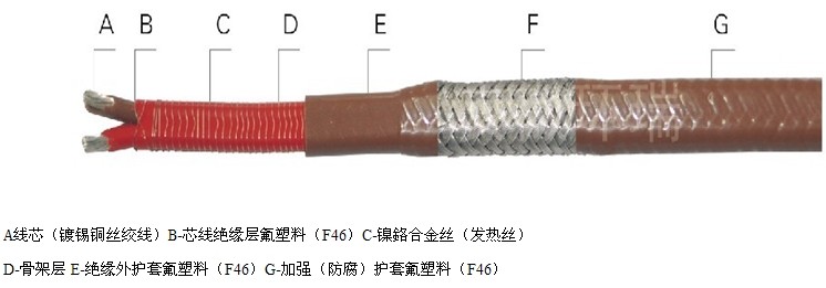 電源母線為二根平行絕緣銅線,在絕緣層中間纏繞電熱絲,并將該電熱絲每隔一定距離(即“發熱節長”)與母線連接,形成連續并聯電阻。母線通電后,各并聯電阻發熱,因而形成一條連續的加熱帶。