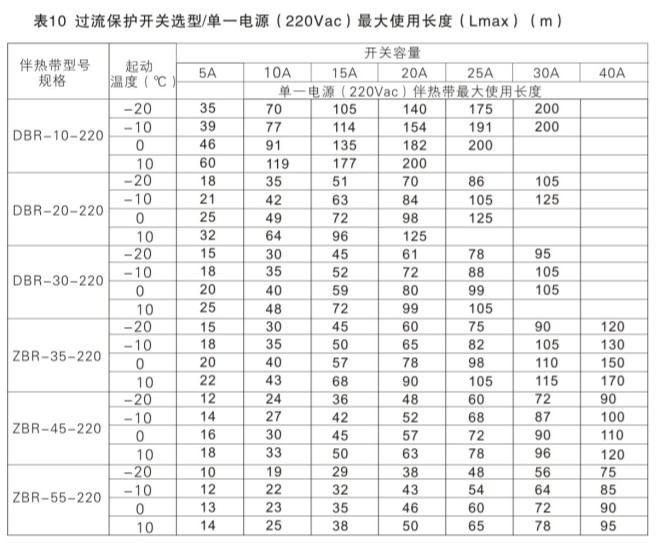 自限溫電伴熱帶如何選擇保險絲及開關容量