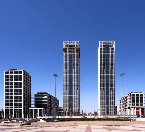 大連國際金融中心諾德大廈位于大連市沙河口區會展路和體壇路之間,東側是大連期貨廣場A座工程,南側是百年匯開發的大連國際金融中心配套工程,其中軸線是大連星海廣場的中軸線。A、B座對稱布局,面向原來的會展中心。雙子座大廈及其東西配套建筑圍合而成一個長方形廣場,其構成向北開敞的會展中心收尾,并在大廈前方營造了延伸到會展路以外的巨大廣場空間。